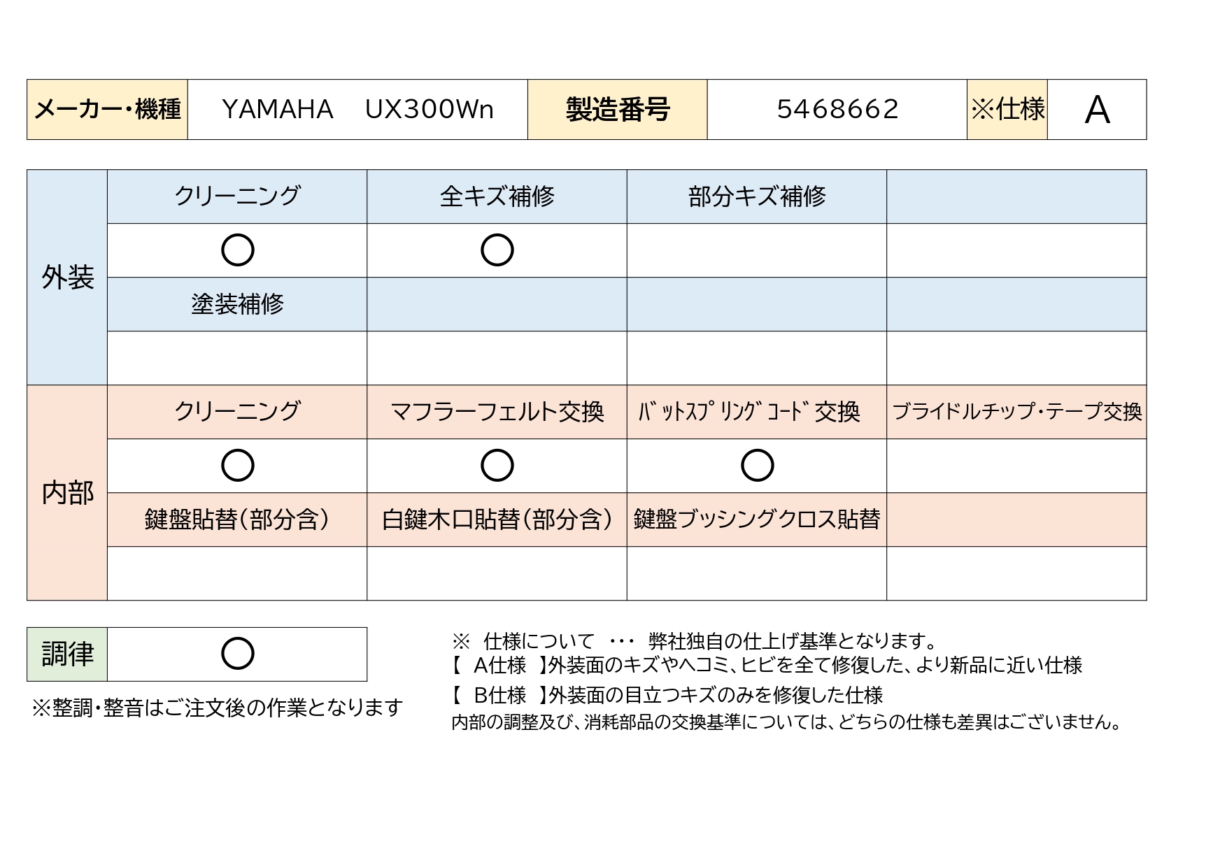 | アップライト | 19,800円 | 2,200円 | 8,800円 | 6,600円 | 8,800円 | 6,600円 | |