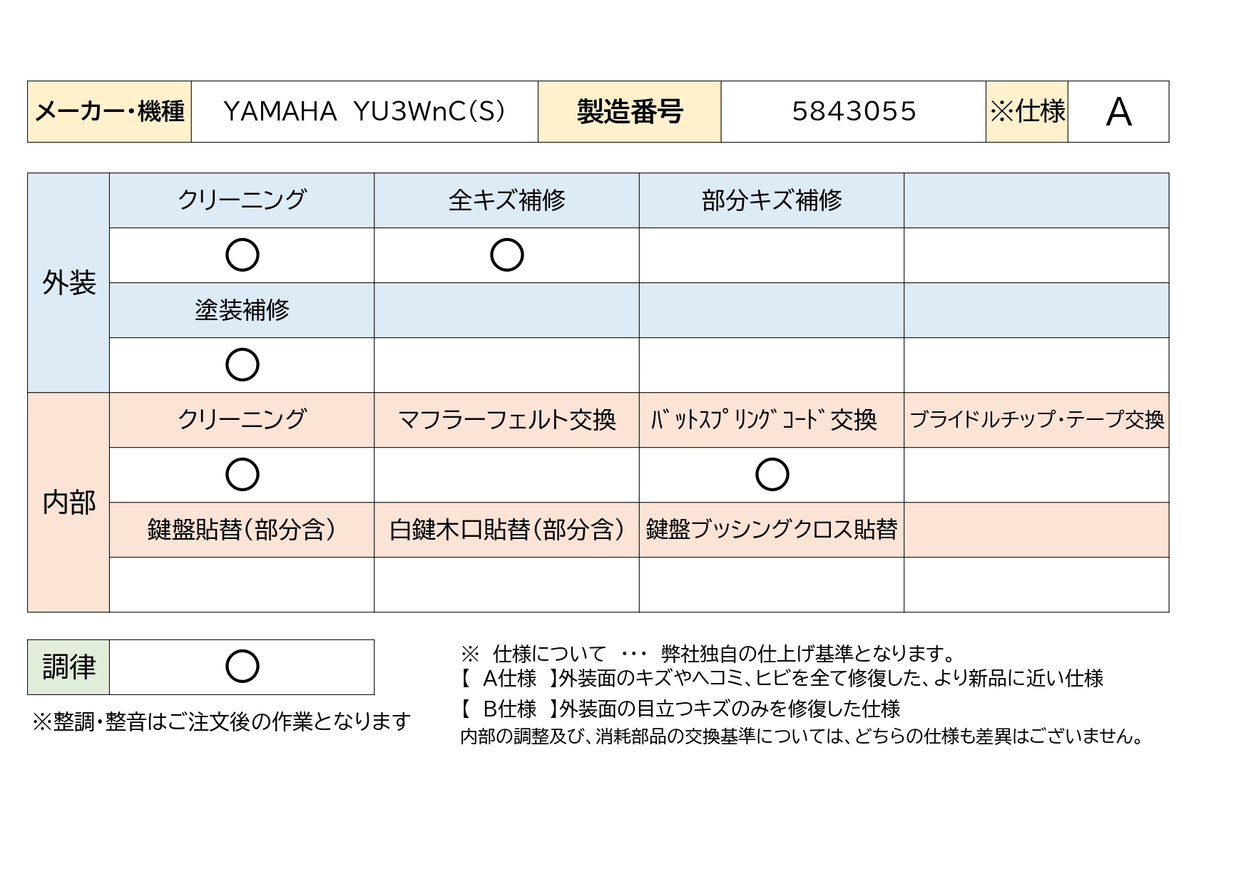 | アップライト | 19,800円 | 2,200円 | 8,800円 | 6,600円 | 8,800円 | 6,600円 | |