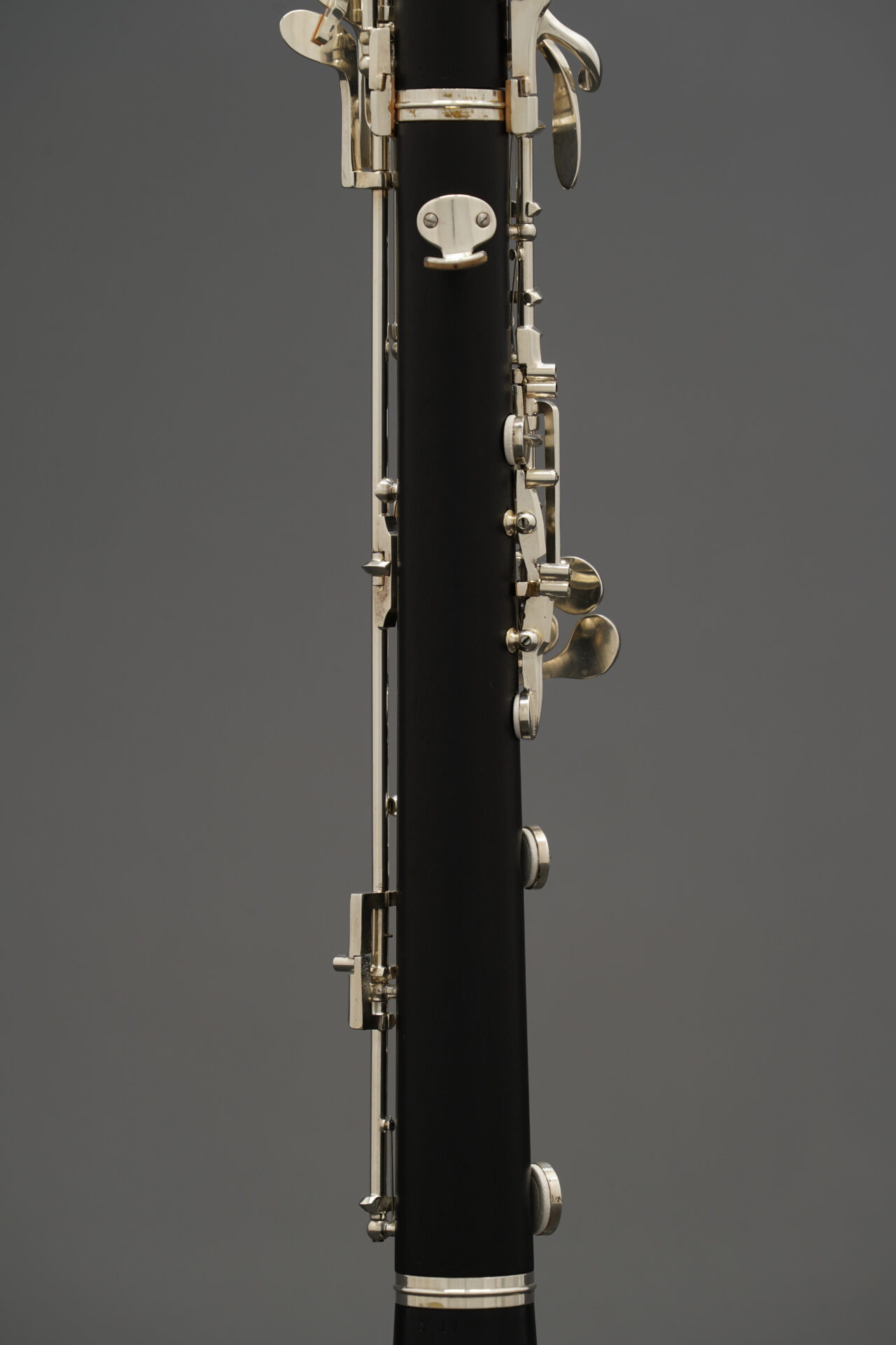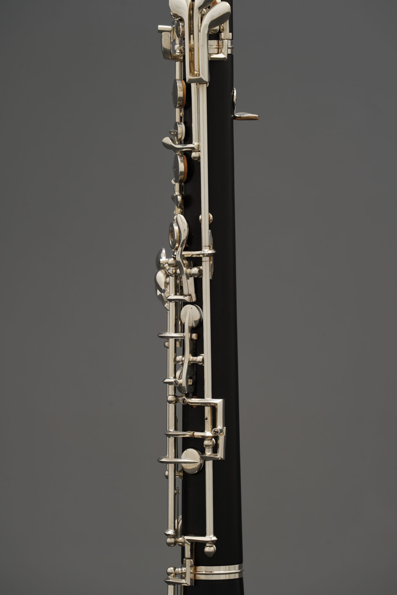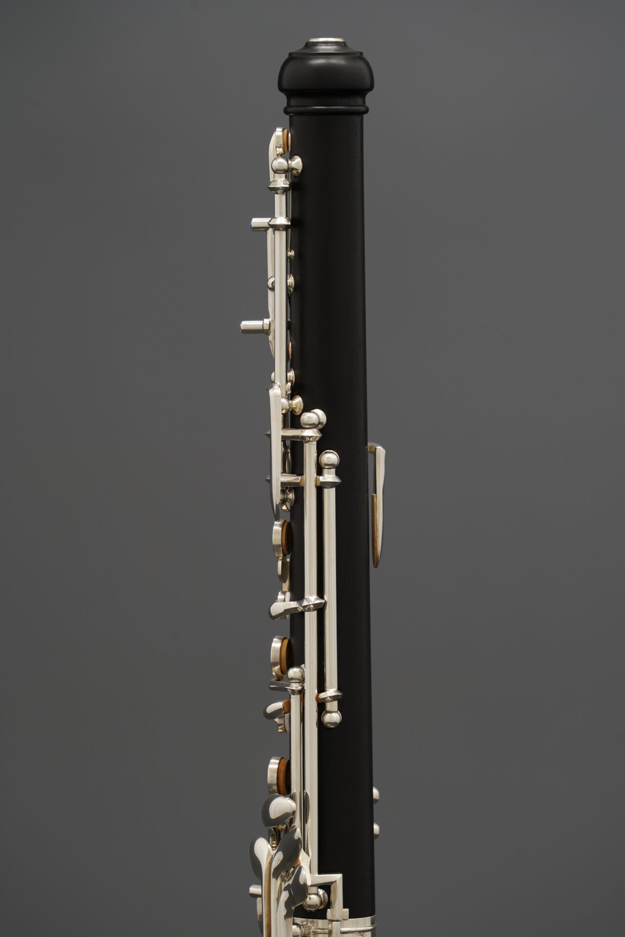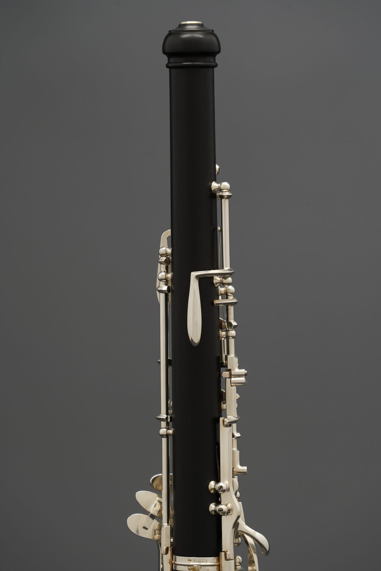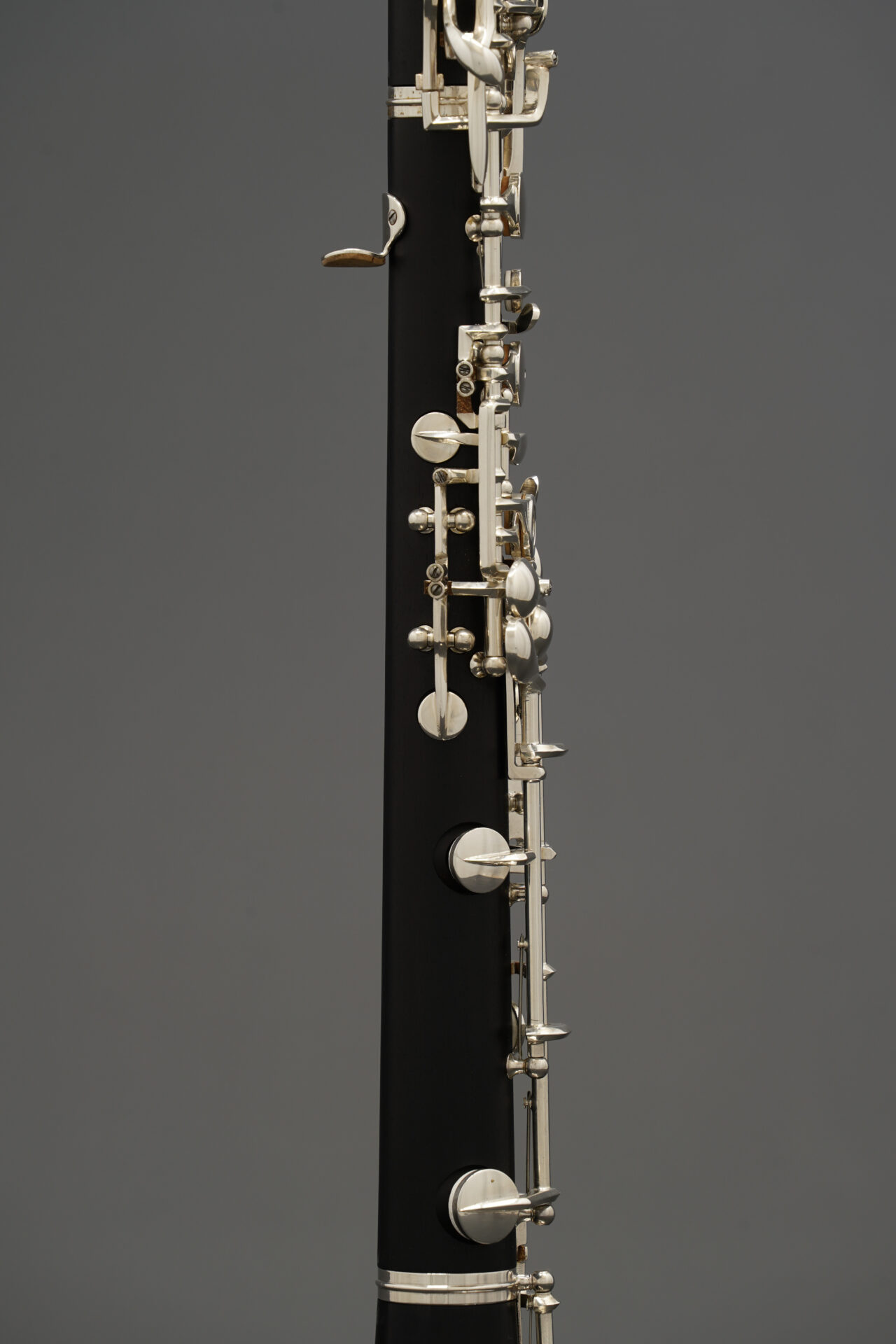 この楽器は木製管体で、下位モデルにはない多くの代替運指キーを備えています。