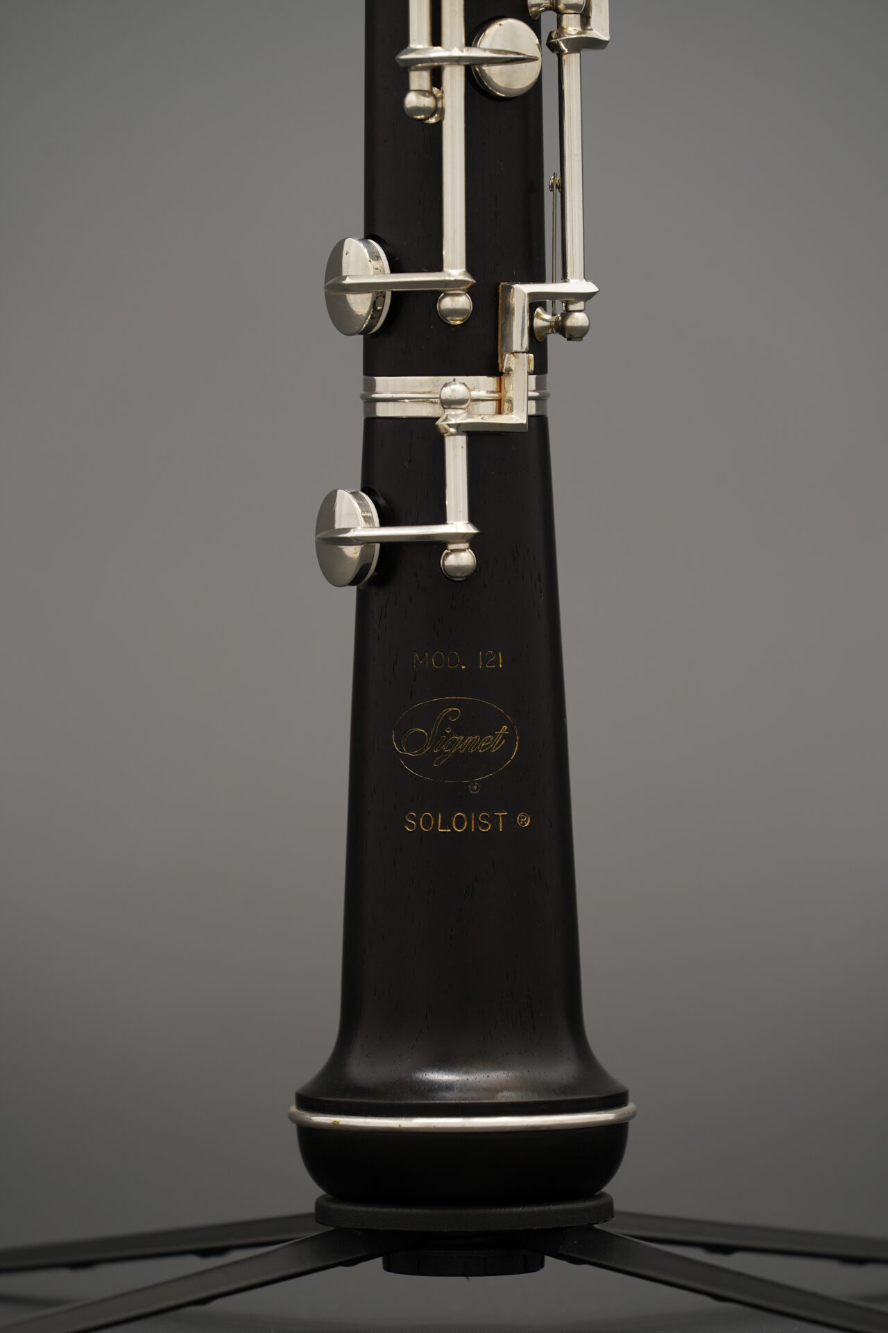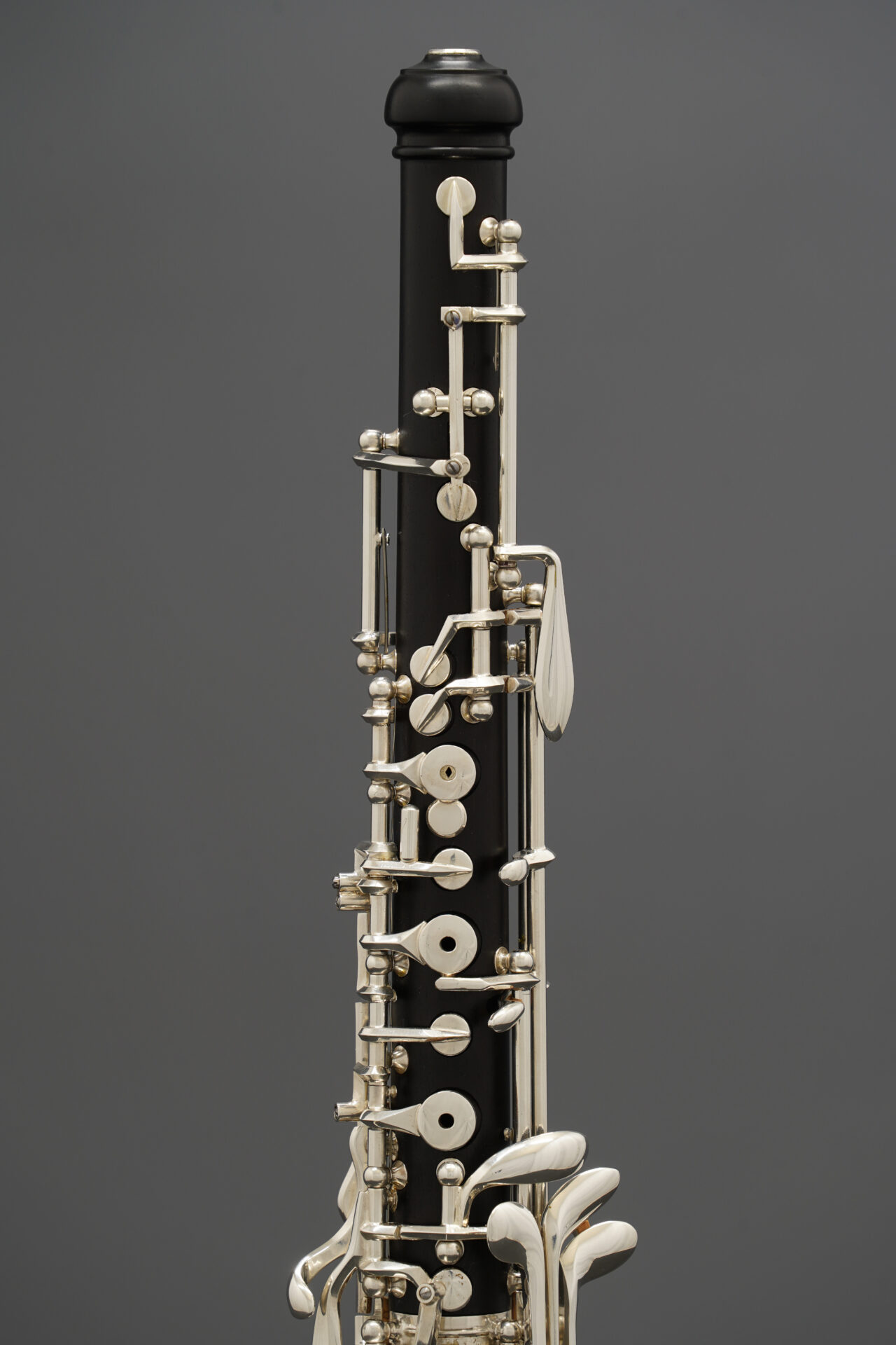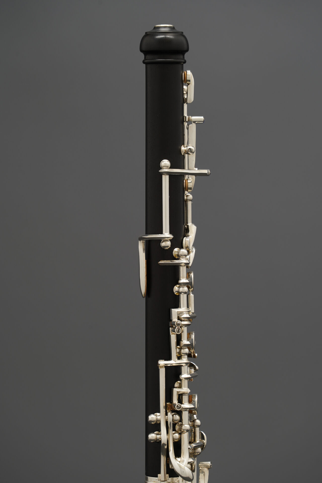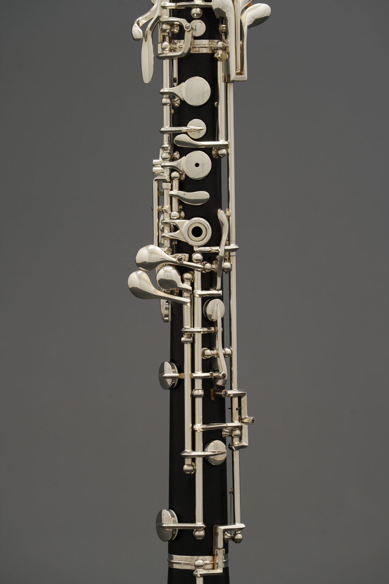 この楽器は木製管体で、下位モデルにはない多くの代替運指キーを備えています。