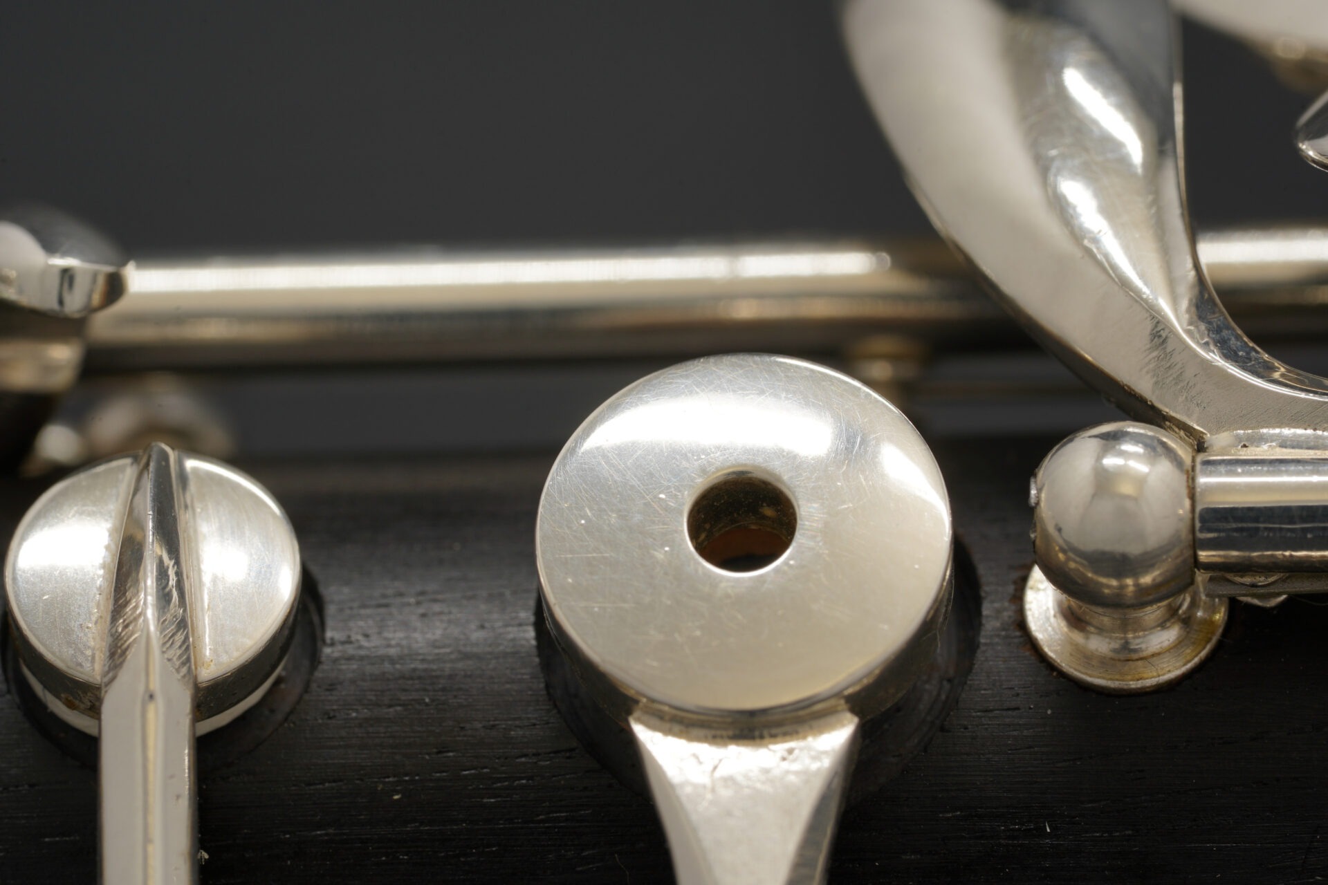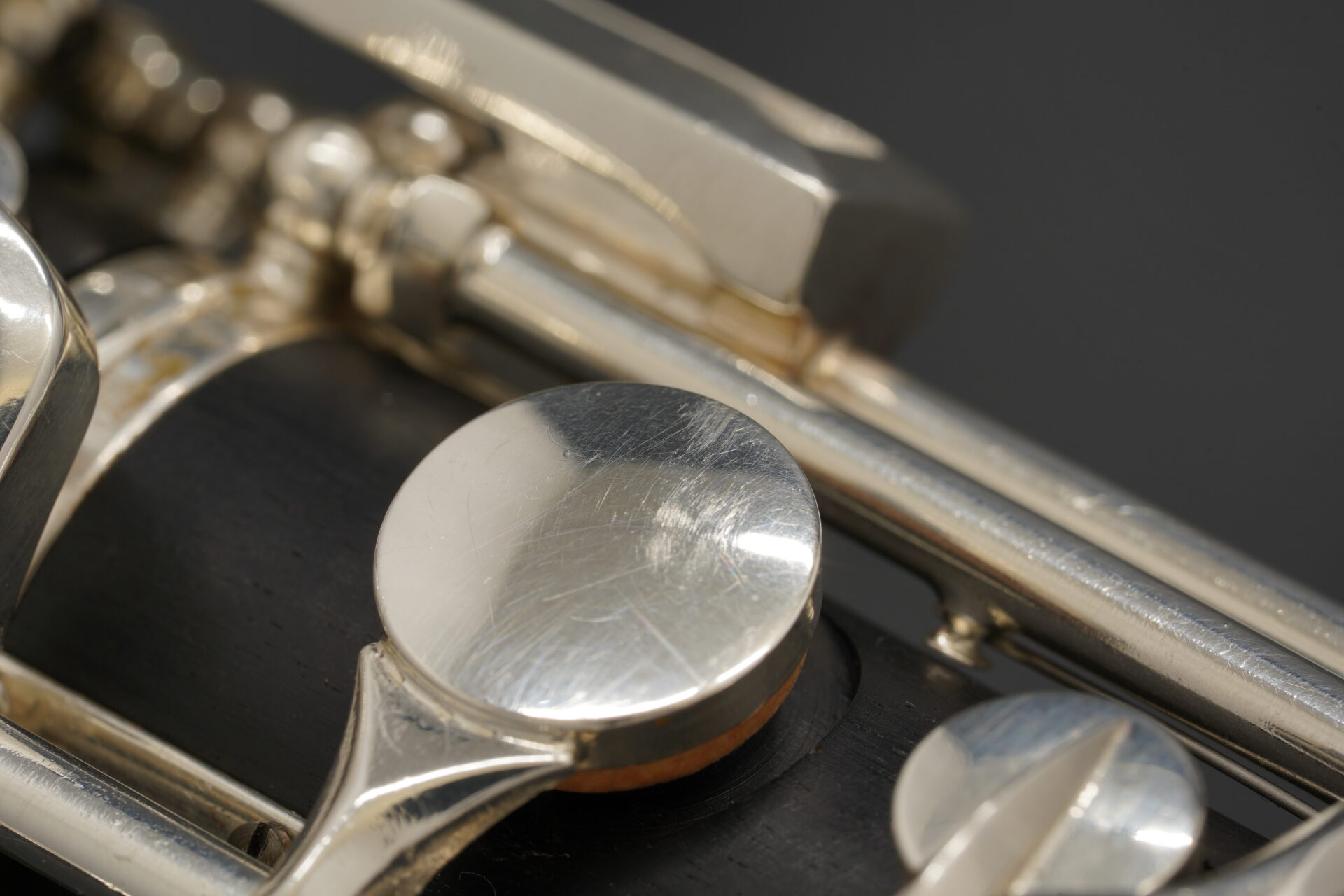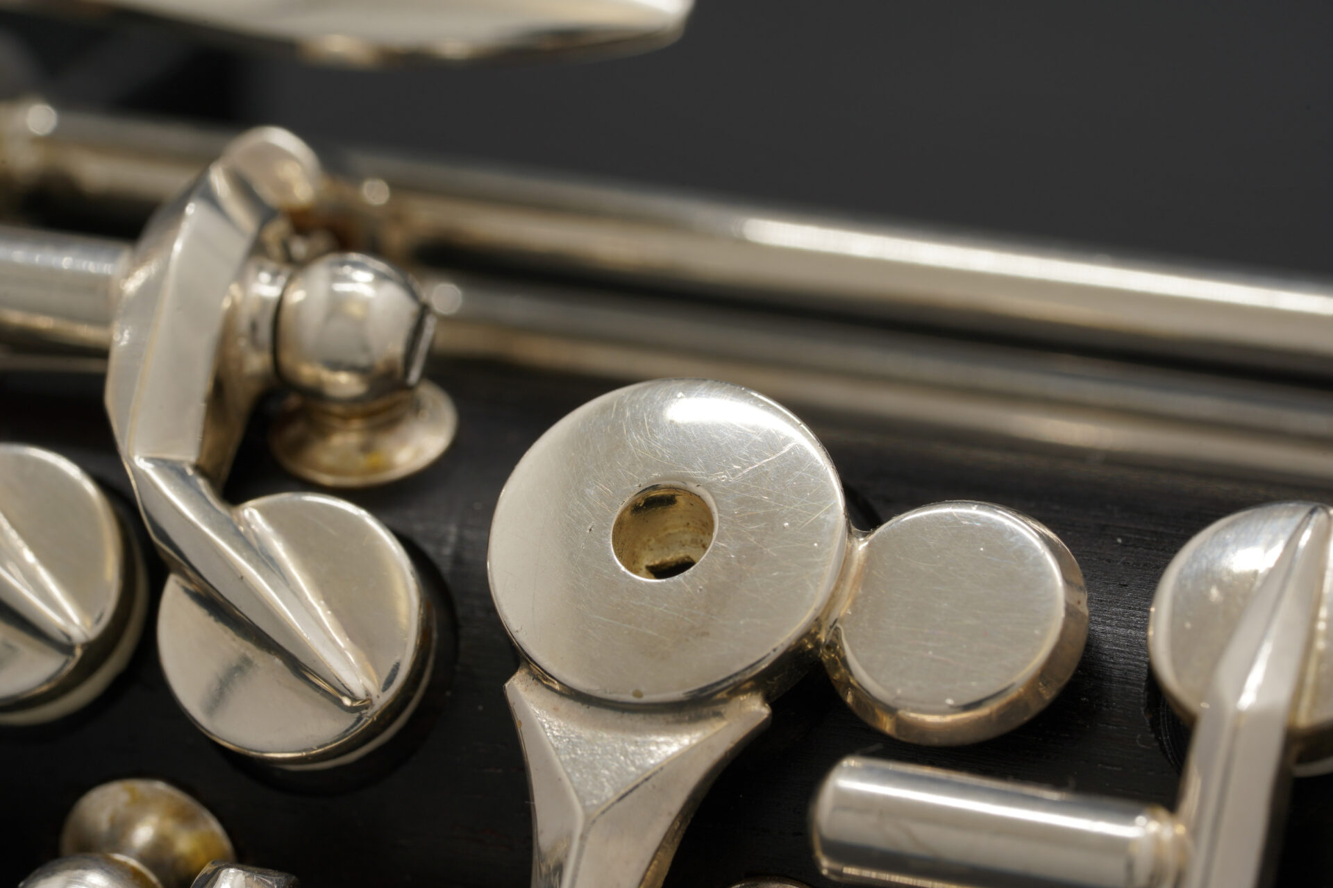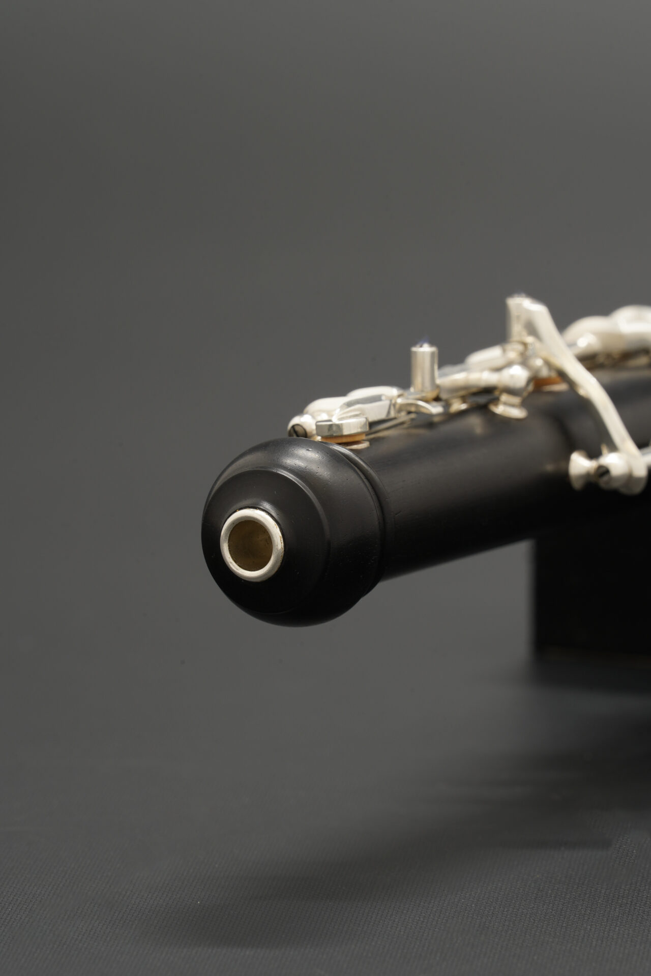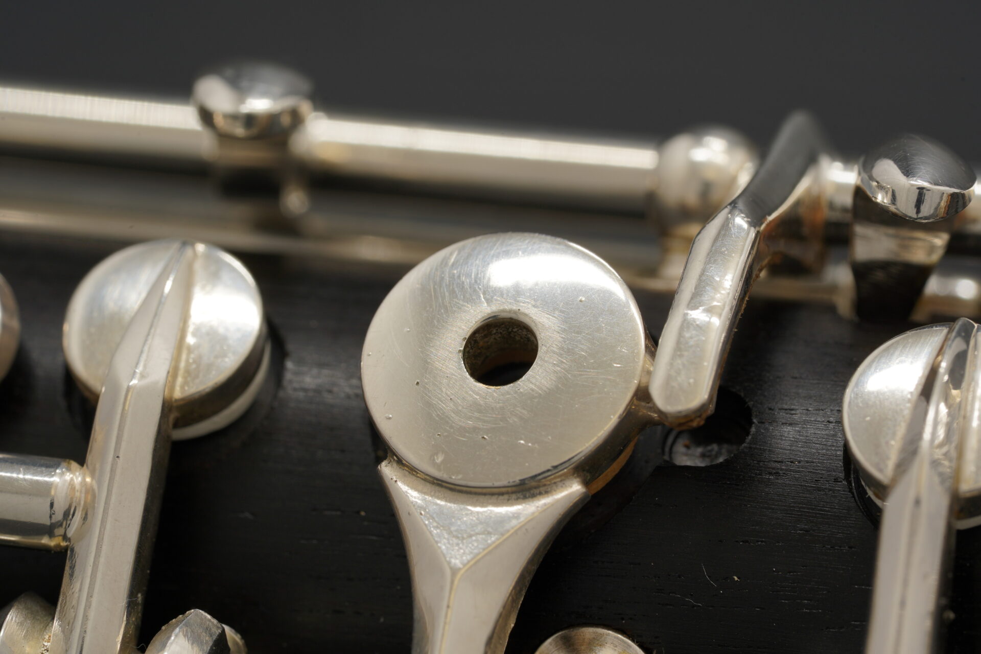 この楽器は木製管体で、下位モデルにはない多くの代替運指キーを備えています。